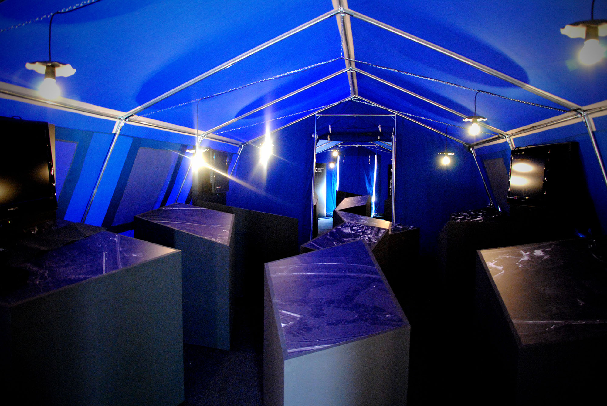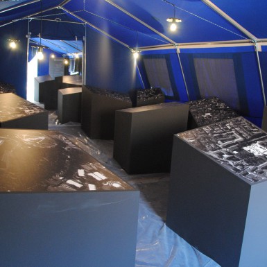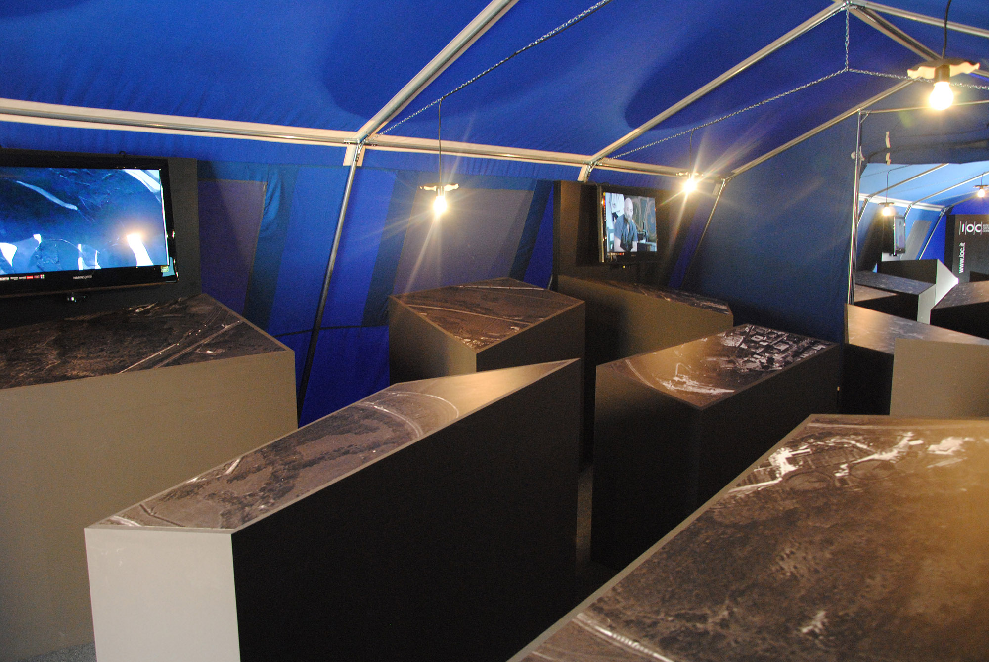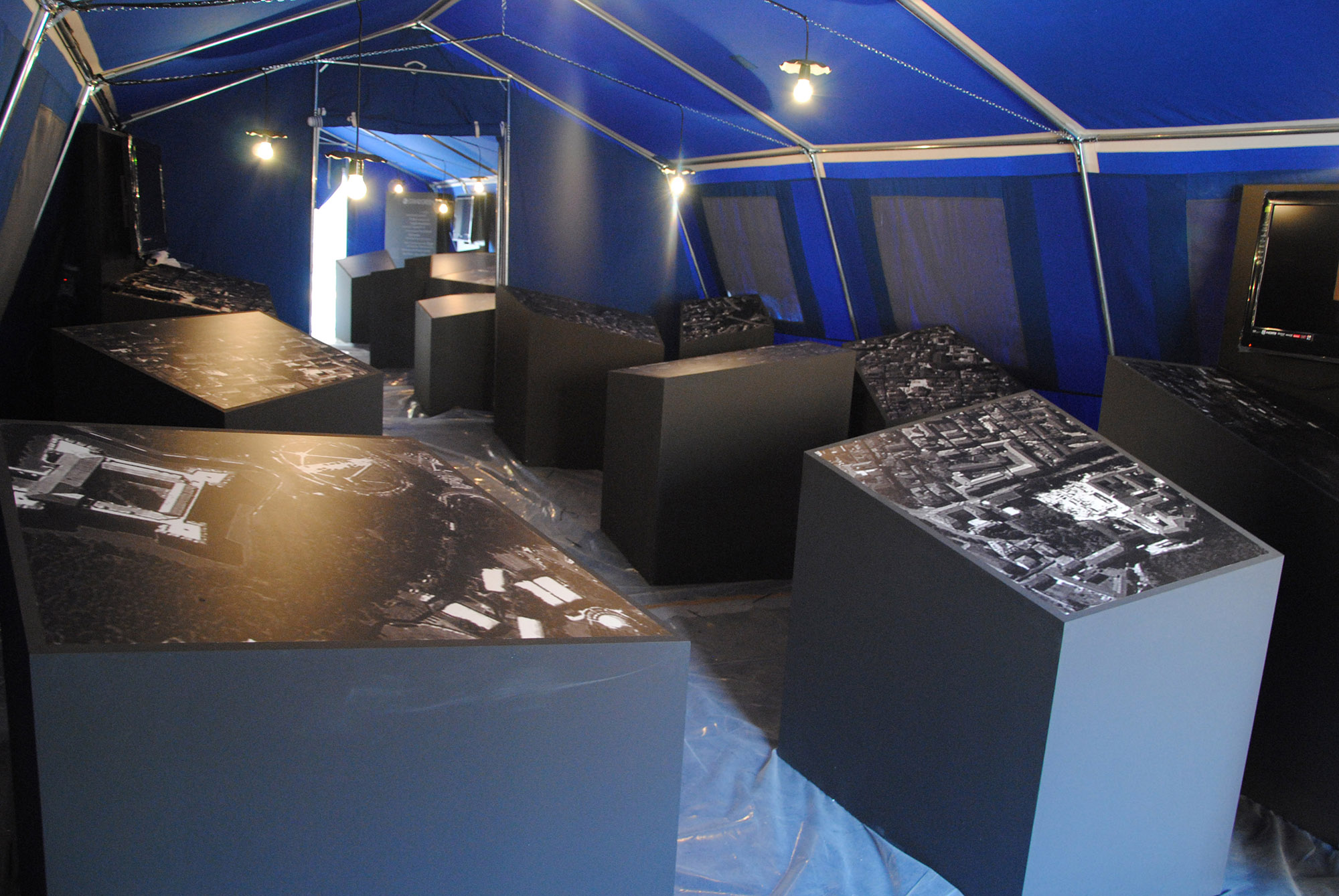 1. The tent of People meet L’Aquila where an evocative reflection is organized in the space on the theme of the period of transition that passes between the abandonment of the territory and its rebuilding. Here there will be shown the first materials produced by the International Consultation recently issued on this theme that will see cultural contributions by architects’, artists’, photographers’, writers’ and directors’ from all the world. Displayed documents are updated regularly to highlight the character of open yard event.
