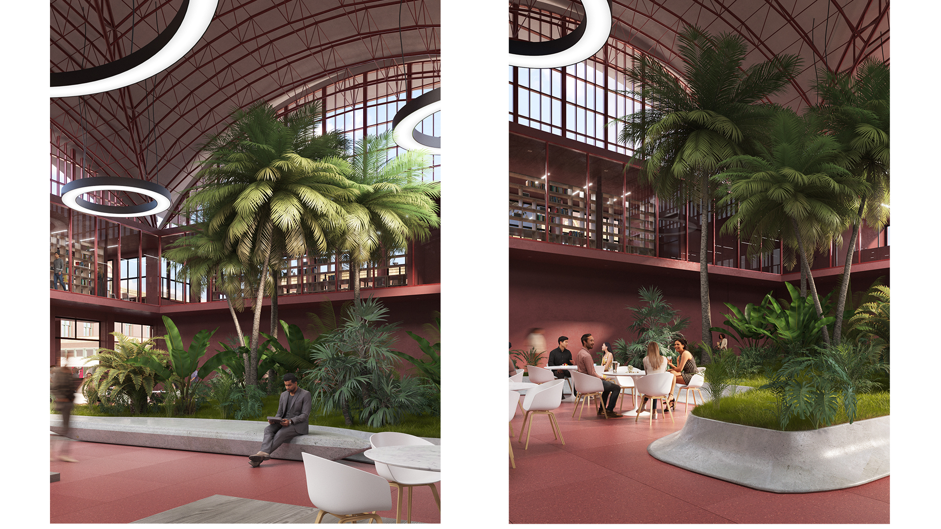 The architectural project for the redevelopment of the building stems from the need to respect the main function performed, namely that of the market. Therefore, conservative interventions have been carried out in order to maintain the shops present along the perimeter, without distorting the architectural layout. The central area of the market has been redesigned in anticipation of the possible installation of various prefabricated boxes within which it would be possible to carry out different functions, from the strictly commercial one of the market to that of catering, or to be able to carry out both functions according to needs. The boxes are designed in precise positions with the aim of creating internal paths and are interspersed with the presence of flowerbeds placed on the floor of the market. The retaining floor is implemented with the construction of a radiant floor and the related stratigraphy consisting of an insulating panel and concrete screed: this stratigraphy makes it possible to reorganize the internal space to make it accessible even to users with reduced mobility. The market area also included the rectification of the partitions on the east side, the replacement of the partitions of the shops on the west side and the concierge located at the south entrance with transparent walls and the construction of a technical room on the west side.