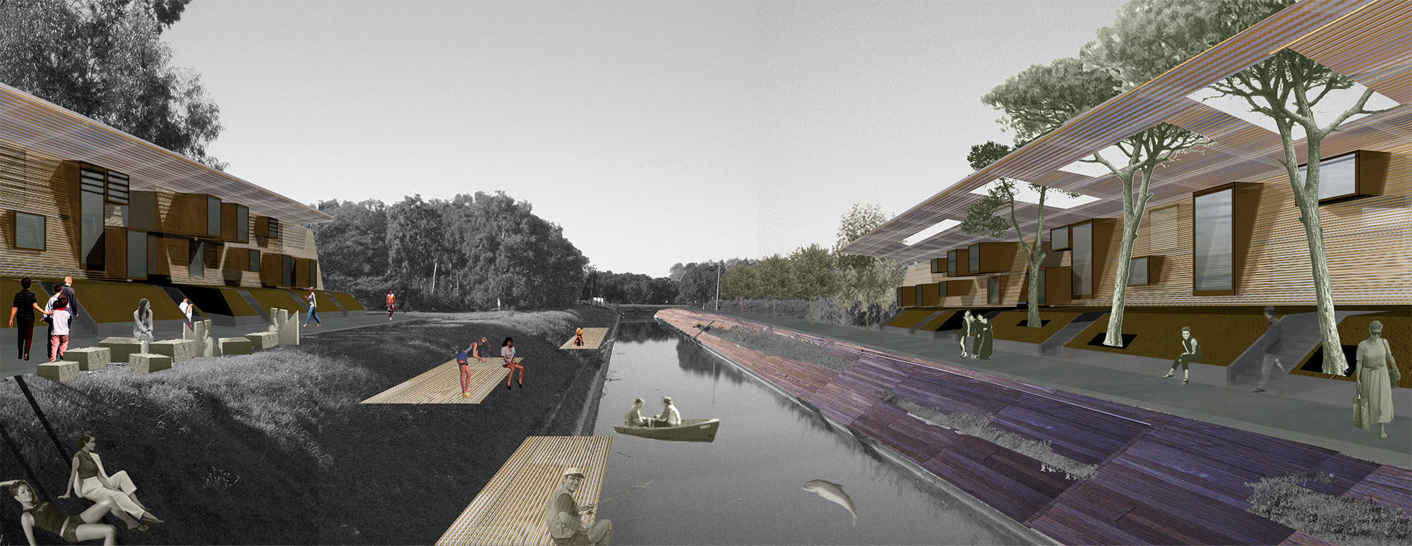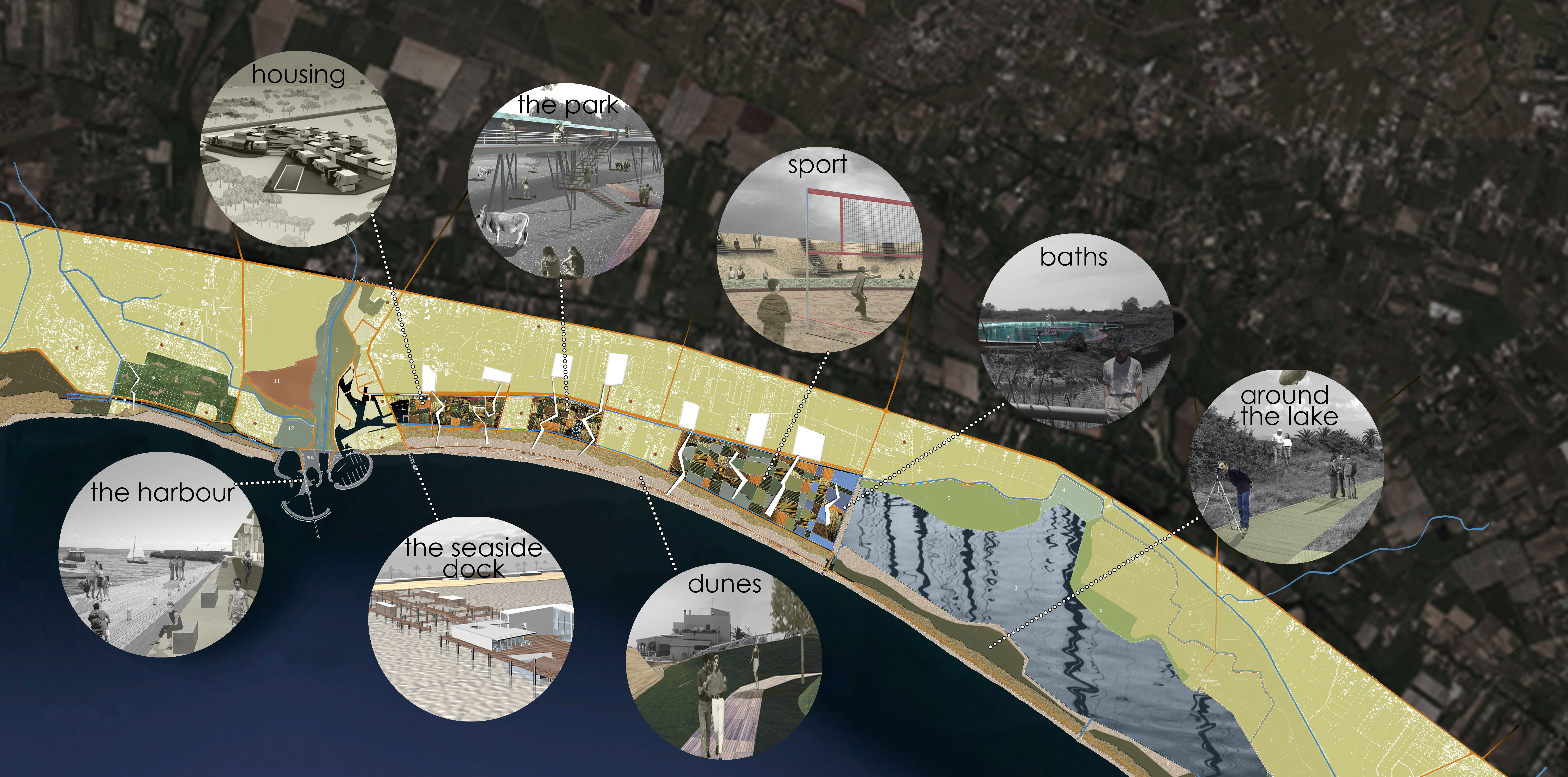 The second phase consists of the realization of a “Parco del litorale”; of an inhabited wharf with a complete system of “floating islands” and the renewal of the lake area.