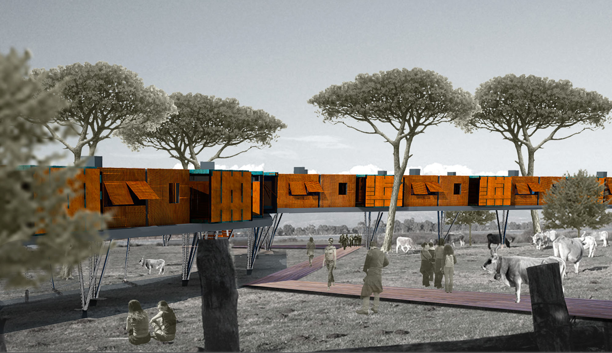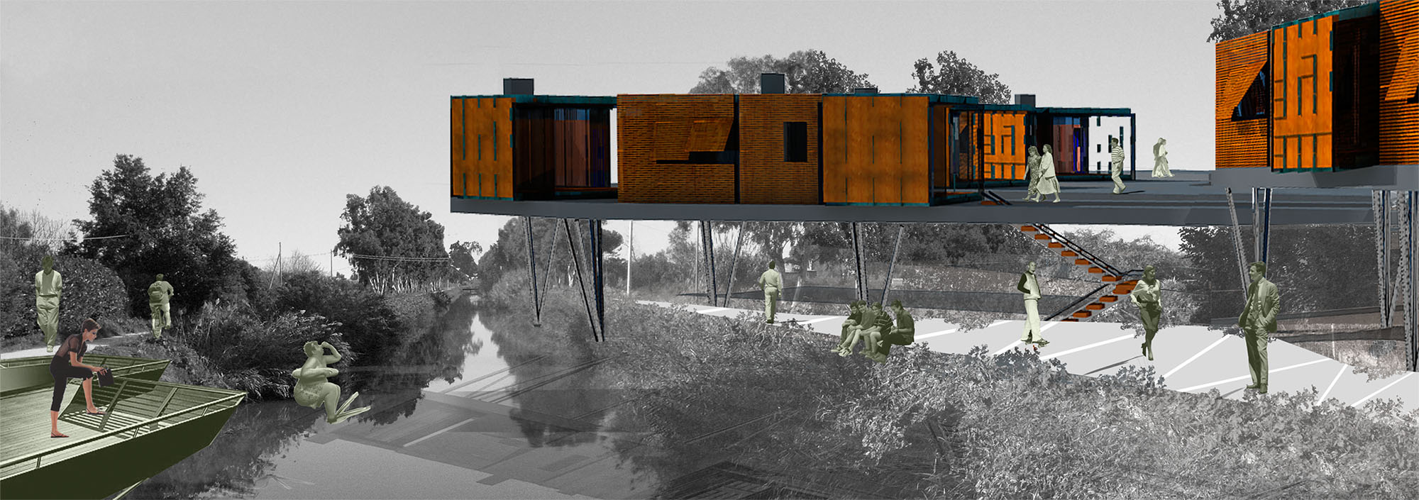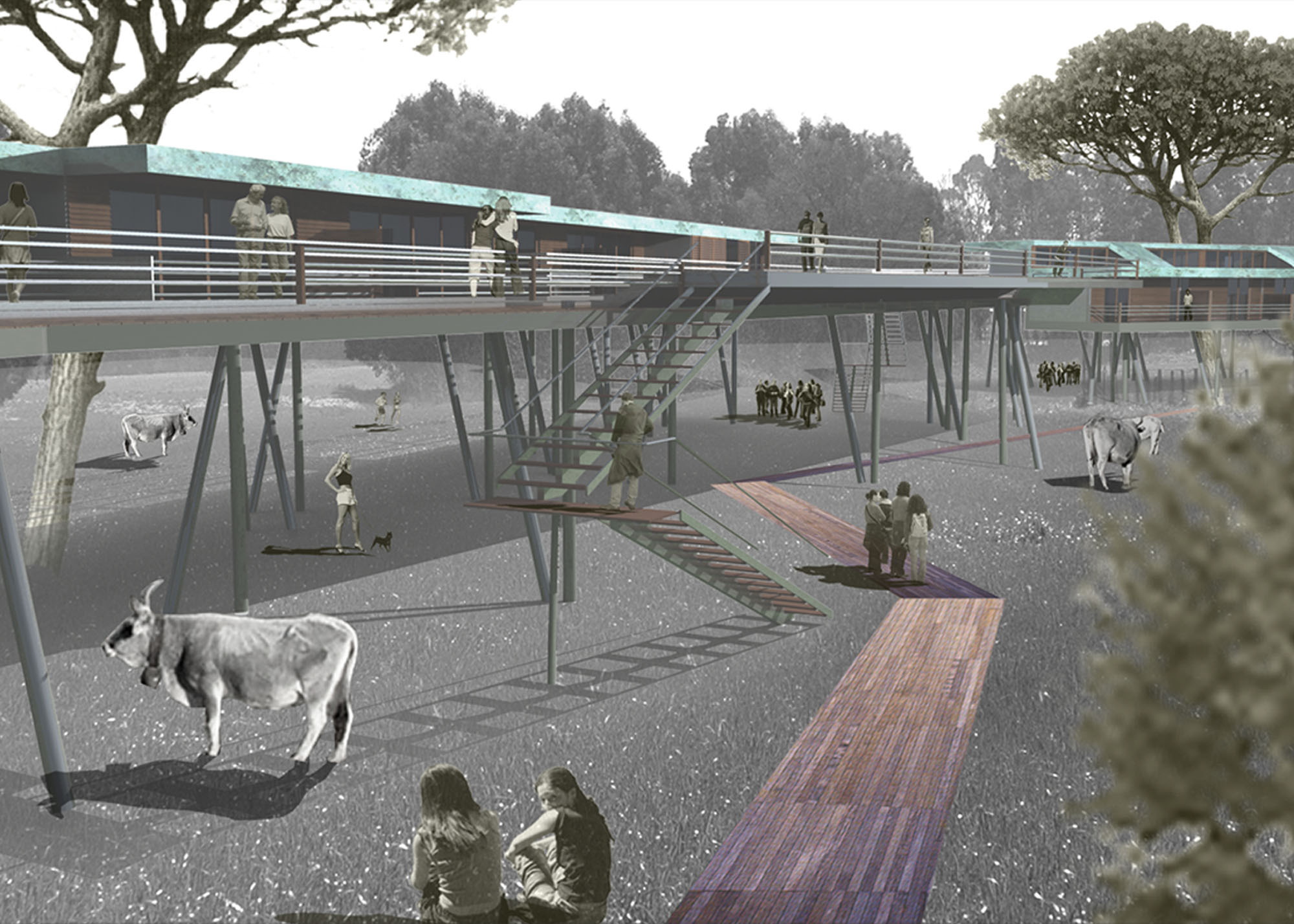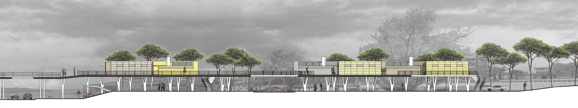 The project, for development reason, is divided into two phases. The first phase sees the demolition of unauthorized buildings, located on the beach, and the reconstruction of a “borgo” system on the back part, with little residences on “pile dwelling”, distributed by suspended ways.