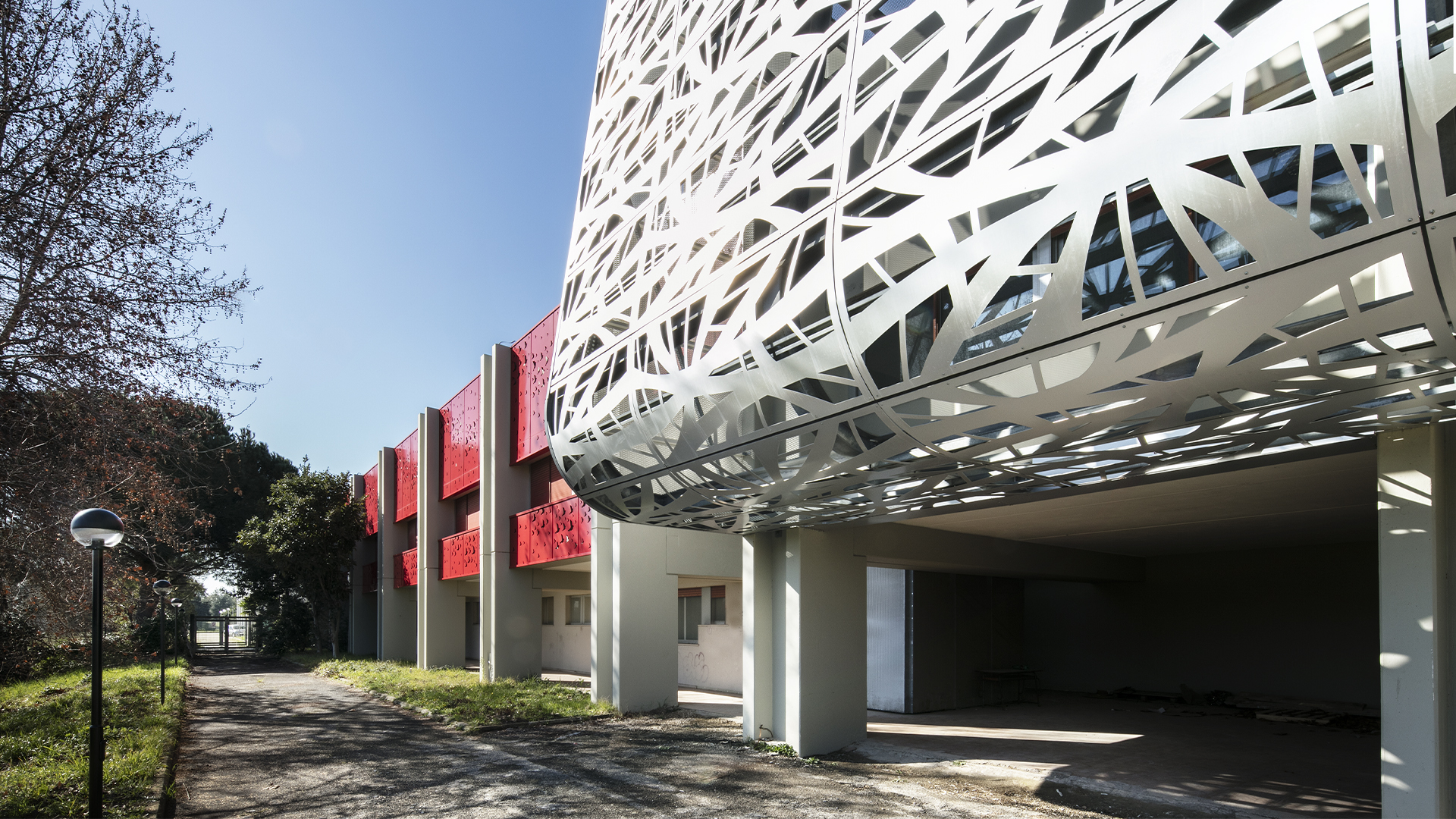 Within Rome’s Public Residential Building Plan, which includes “Il Corviale”, the kilometer -long building designed by Mario Fiorentino from 1967 to 1970, there are also two architecturally similar building structures: a cultural center-library and a school structure. The school, built in the late 1980s, underwent a marked, progressive deterioration, and already at the beginning of the 2000s was underutilized with respect to its potential and in need of reorganization. The decision of the Municipal Administration to bring the building up to standard provided the impulse to create a new structure with the participatory action of all the actors involved. The aim of the transformation project is to make the school more functional, with a focus on energy-saving, and to revive the complex within the district. Its prefabricated construction makes it possible to intervene on the existing structure with subtractions and displacements of some parts and expansion of others. The scheduled interventions are: the creation of a “conservatory-patio” in the school, the introduction of a new central block to use as a theatre with about 200 seats, the construction of a new lab building, the restructuring of gym-related services, the redevelopment of the custodial quarters in order to create a small day-care center, the enhancement of the façades with the introduction of a new casing and a micro-greenhouse, and the complete reorganization of the sections, and the redevelopment of the park . The introduction of the patio is intended to make the current atrium area a pleasant place to use, to improve its bioclimatic performance and, thanks to the large glass walls, to make the spaces that overlook it more luminous and pleasant. On the typological level, the corridor becomes a pathway with equipped wall space, true showcase-windows, where students can exhibit their projects and objects made in class. The school complex is surrounded by a garden park that is completely reorganized, creating an intense relationship with the surrounding landscape and creating a large area of green filter. The new arrangement provides for various spatial arrangements: there are steps for shows and performances, “green open-air rooms” for educational activities, spaces for sports activities, all with the aim of opening the school to the neighbourhood and the surrounding area.